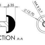 Cette butée hémisphérique compacte est une option populaire pour les clients de l'industrie aérospatiale et industrielle. Elle est parfois utilisée comme pied pour absorber les vibrations, mais généralement comme butée arrière pour absorber les chocs dus à des impacts plus petits.
