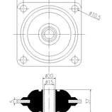 Heavy duty plate vibration isolators are plate mounts, or bulkhead mounts, used to isolate equipment or structures from vibration. This version will take a static loads of 50 - 200 Kg axially, which makes it heavy duty. We have numerious options if lower load ratings are required.