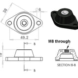 These mounts are manufactured in the UK to a particularly high standard; Metals are bonded to rubber using a 2 layer bonding system (most manufacturers use a single layer system). The advantage of this approach is longevity of the bond, particularly in more environmentally challenging conditions. All rubbers used on standard products are designed to an MVEE (military) standard or an equivalent equivalent British Standard (e.g. BS1154).